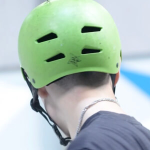He is very safety conscious and always wears a bright green helmet when he is on his scooter. There are lots of videos of him catching air while on his scooter using the ramps at the skate park.